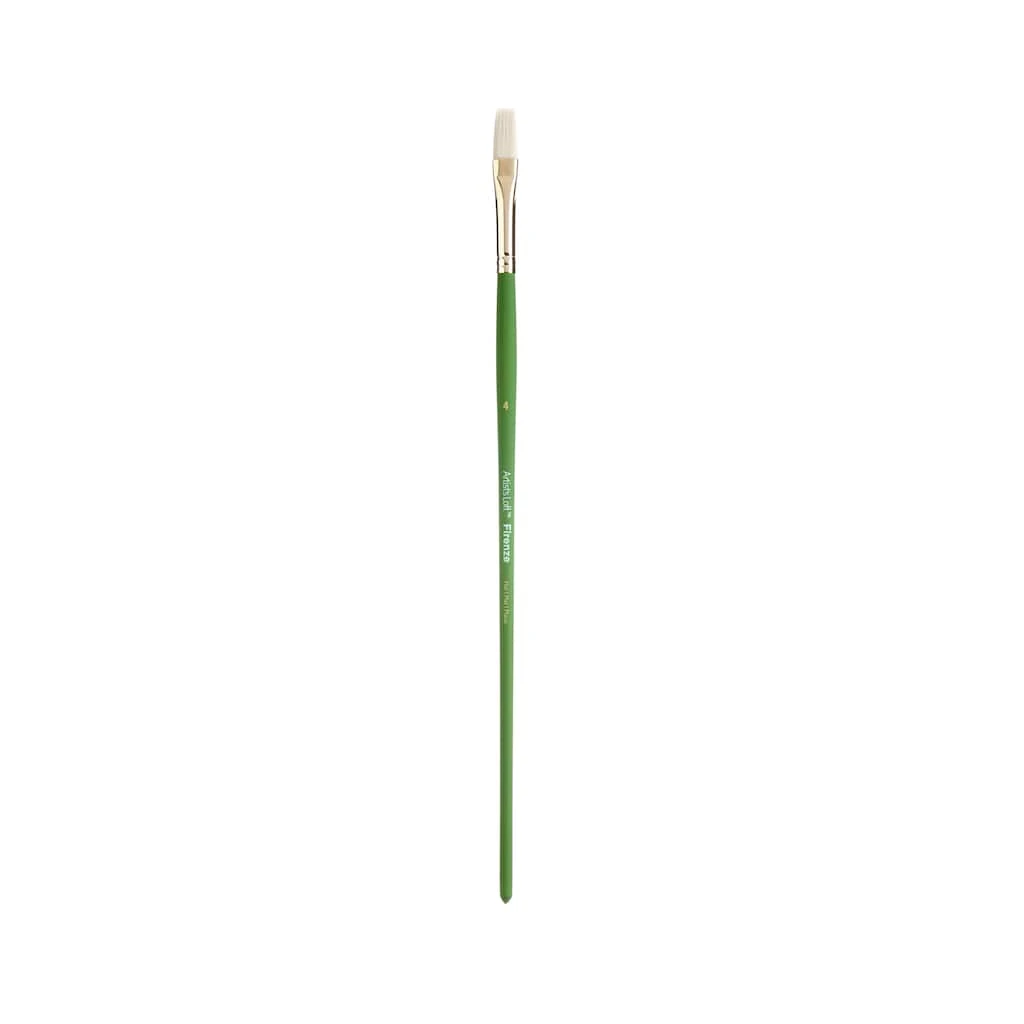 This long-handled brush has a durable, extra firm synthetic filament to provide added artist control. Featuring a Velvetouchโข handle, this functional and attractive brush offers the same feel as natural bristle while maintaining its shape and stiffness when used with water-based media. This quality flat brush is perfect for general painting, offering plenty of paint load capability and lining and shading flexibility.