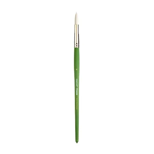This long-handled brush has a durable, extra firm synthetic filament to provide added artist control. Featuring a Velvetouchโข handle, this functional and attractive brush offers the same feel as natural bristle while maintaining its shape and stiffness when used with water-based media. A must-have for every painter, this quality round brush is ideal for details, washes, fills and more.