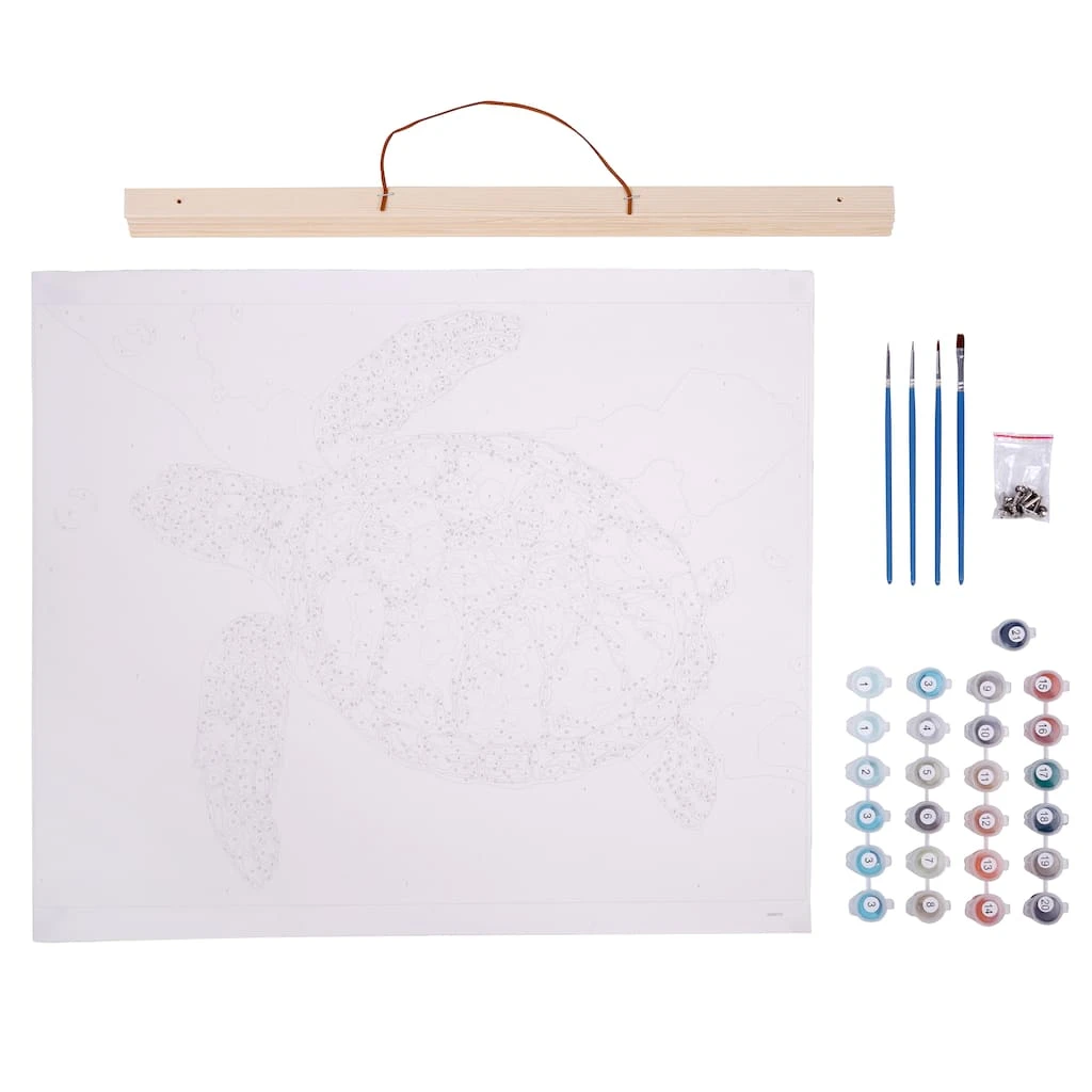 Watch the sea turtle come to life as you transform this paint-by-number canvas in beautiful colors. This simple activity is a relaxing, yet stimulating for children and adults of all ages.
