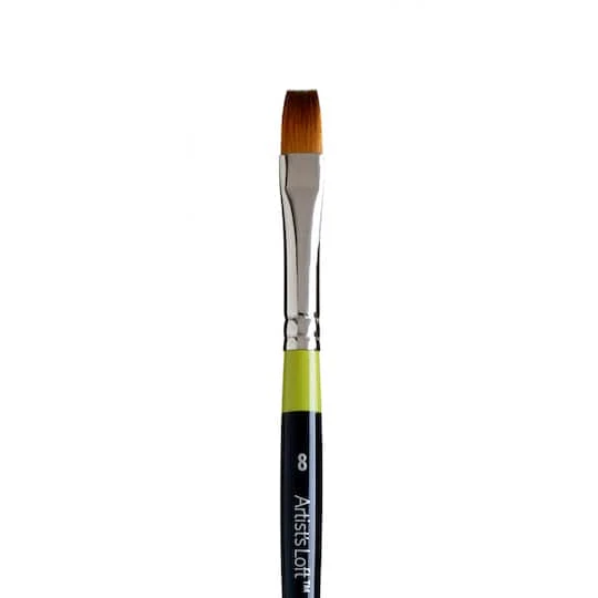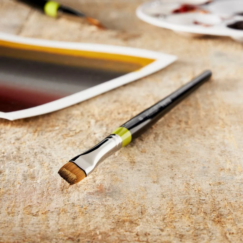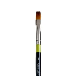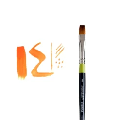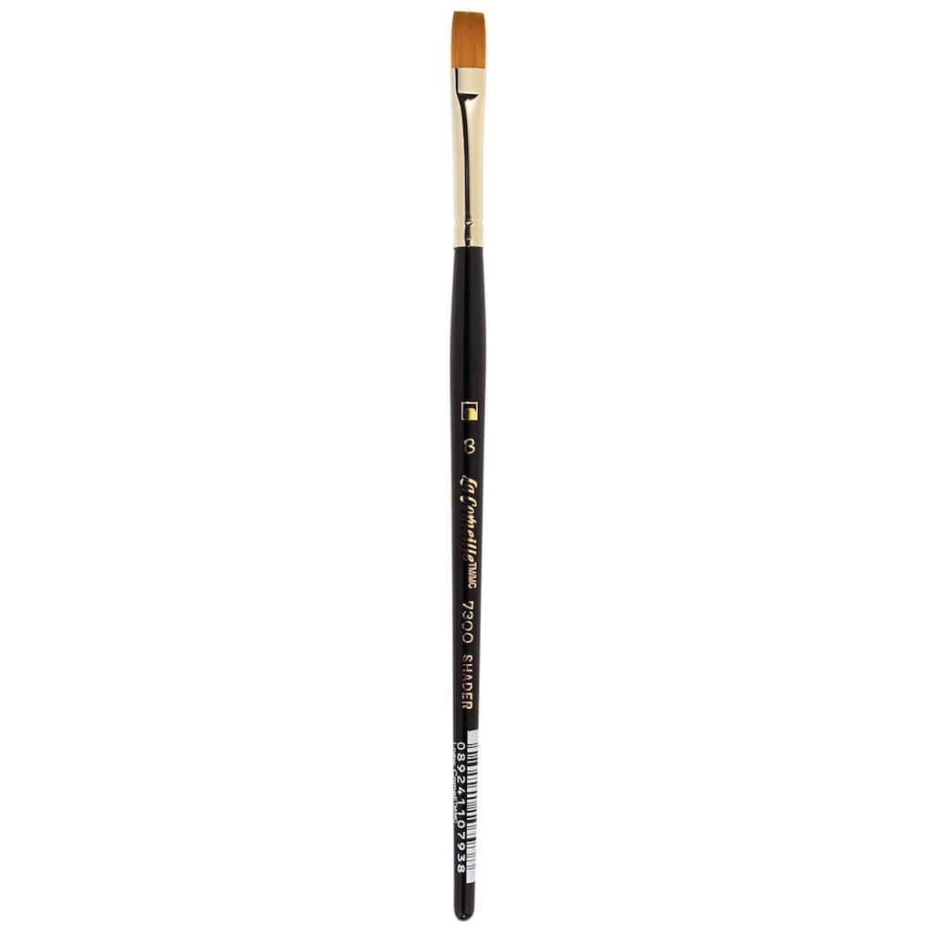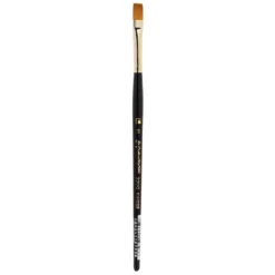 Golden Taklon brushes are widely-used in acrylic, oil and watercolor decorative painting. This short handle shader brush is excellent for creating crisp edges and offering precise control for blocking, shading, blending, highlighting, small washes, and stroke work. Designed for intermediate and advanced craft painters and fine artists, it has triple filament and fully dyed Taklon bristles, a seamless nickel-plated ferrule, and a lacquered wood handle. This brush is absorbent, durable, and versatile.