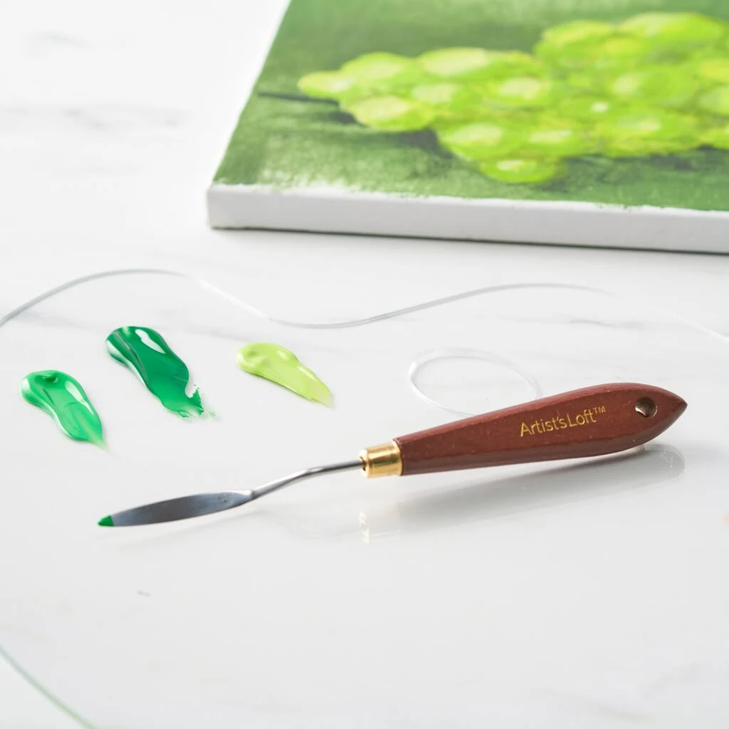 Supply your passion to paint with the proper tools. You can use this short tipped painting knife to mix paint, scrape paint or apply paint to a medium to create textures or details. With a flexible blade and durable wooden handle, you can indulge your passion to create for years to come.