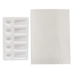 - 4 synthetic, short handle brushes (two #4 flat and round, two #6 flat and round)