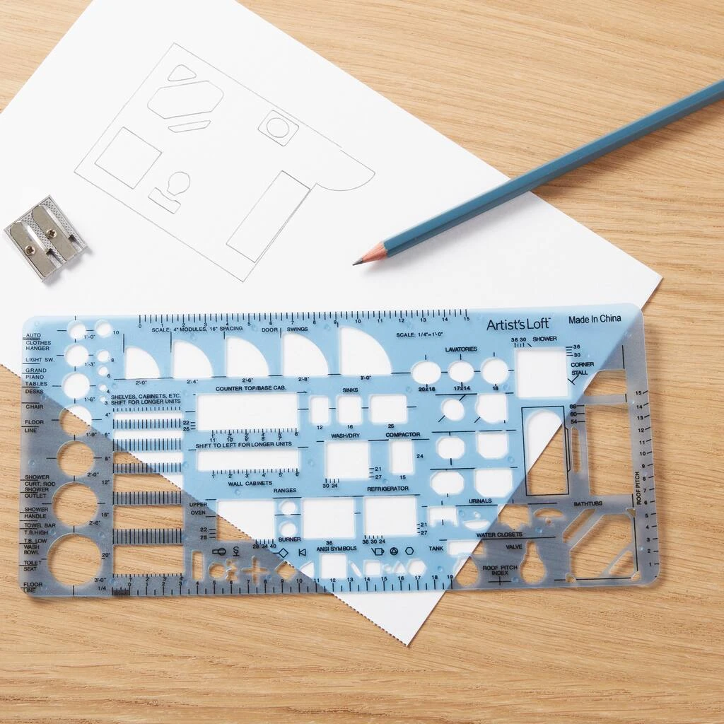 Bring your inspiration home with Artist’s Loft tools. This house plan template is ideal for planning, drafting, drawing and other crafting, especially projects that focus on home improvement.