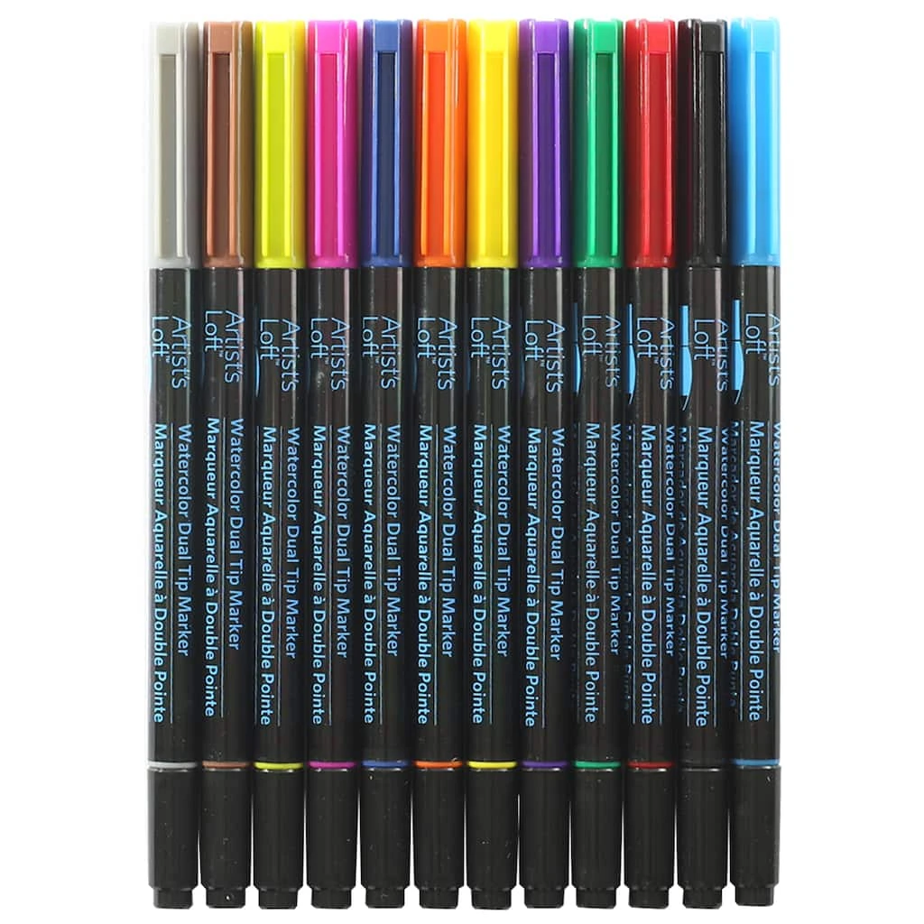 Create beautiful works of art with this set of watercolor markers by Artist’s Loft. These markers contain water-based ink that is suitable for use with water or watercolor paints. With a fine tip on one end and a brush tip on the other, you can create fine lines or thick strokes with equal ease. These dual-tip markers are the ultimate tool for sketching, drawing and calligraphy.