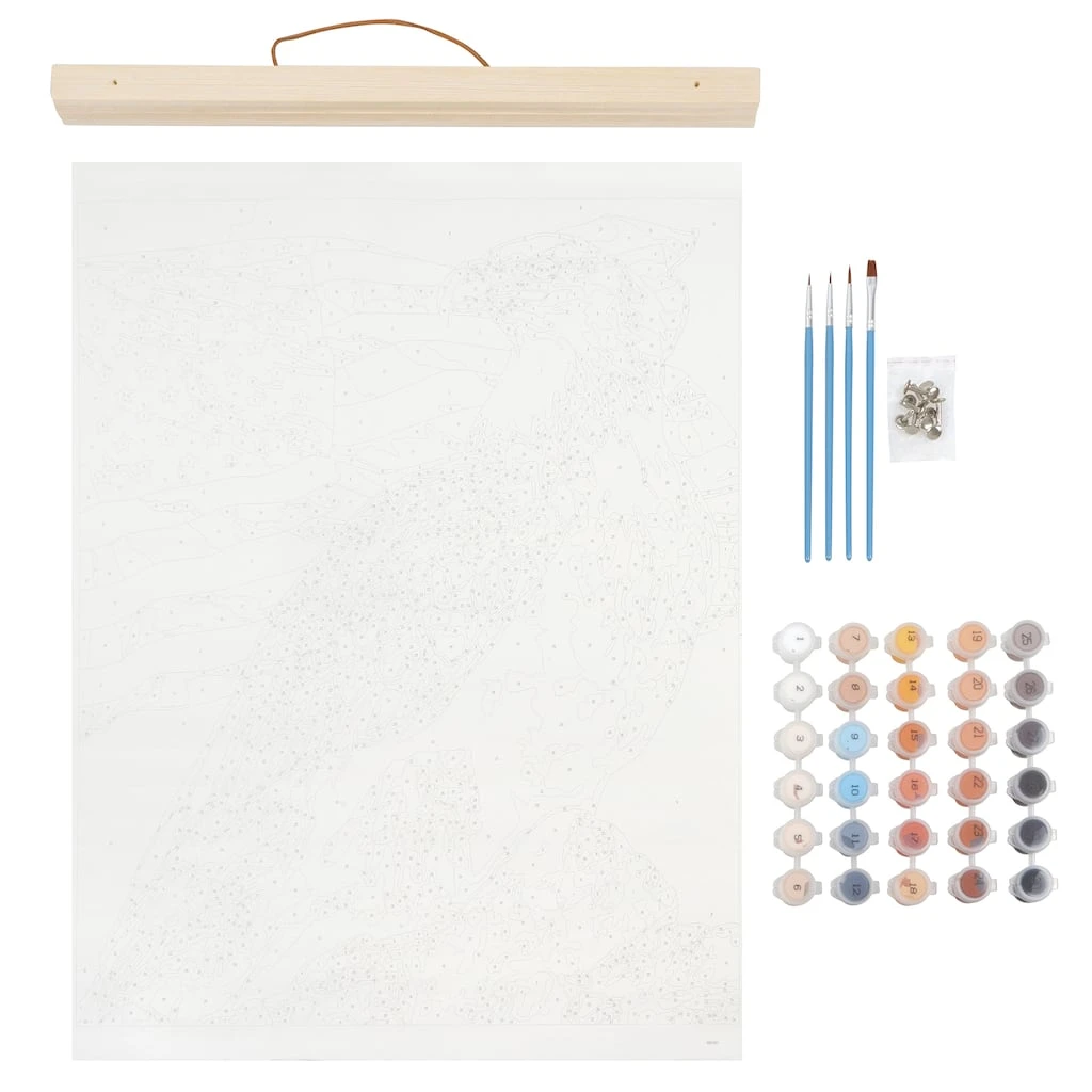 - Pre-printed canvas sheet with guidelines and numbers (16″ x 21.5″/40.6cm x 54.6cm)