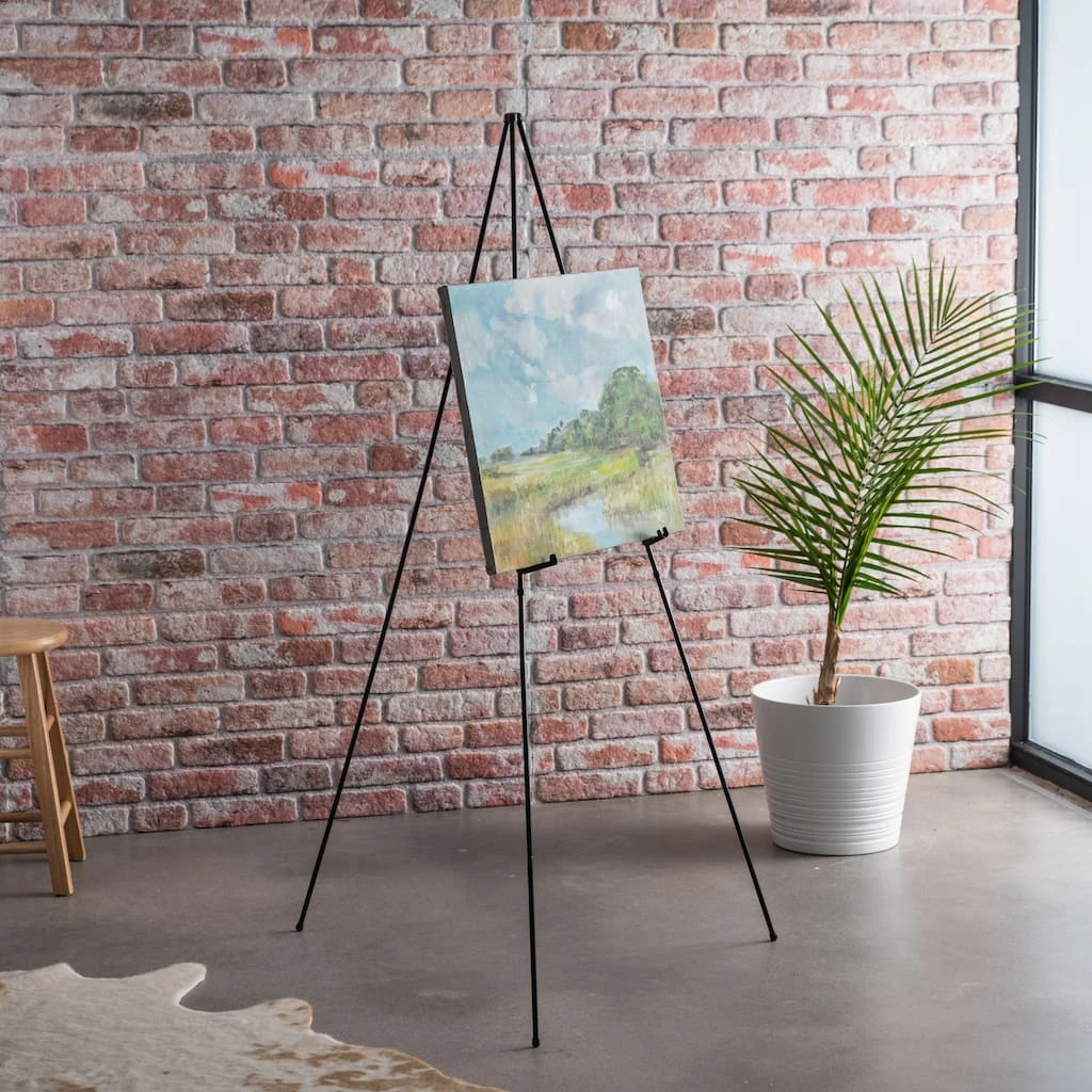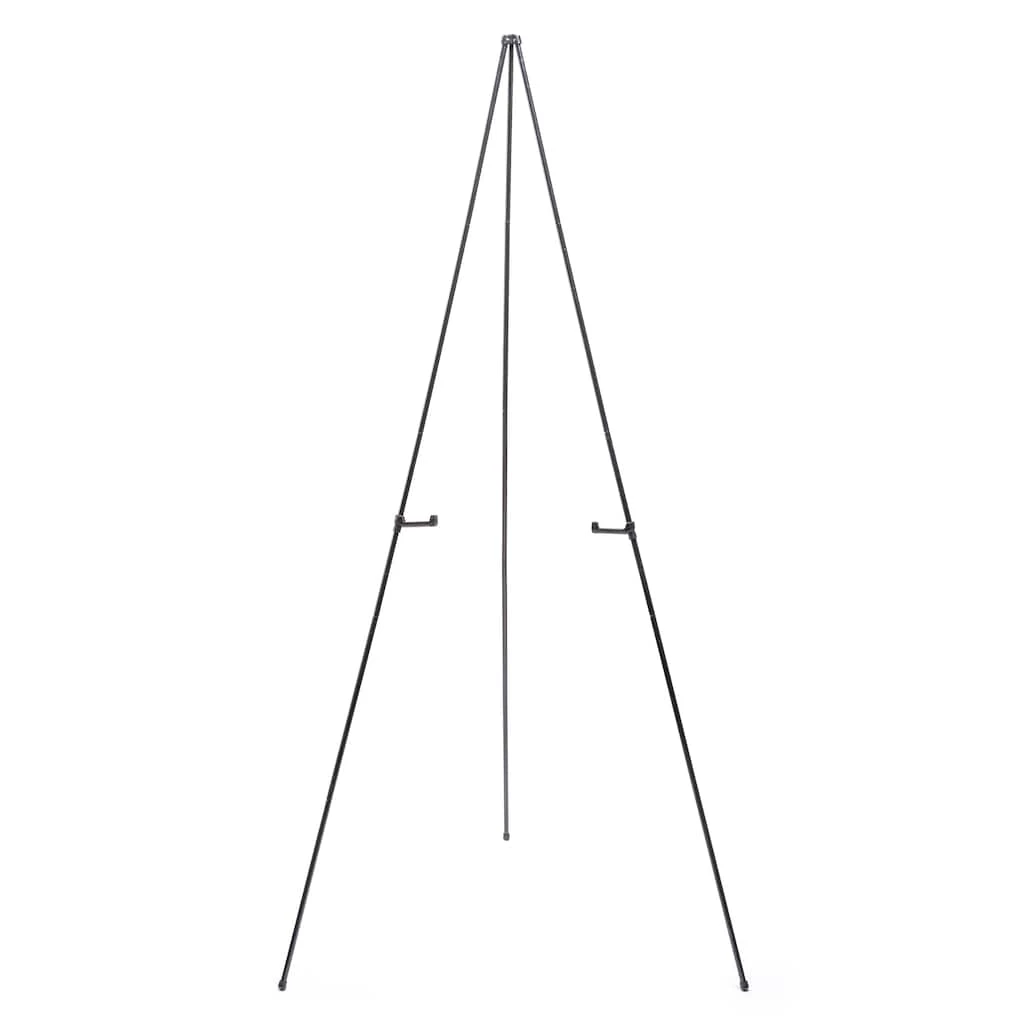 Display an art piece or sign on this display metal easel. This lightweight easel has a tent pole style construction and is easy to set up. Perfect for displaying a welcoming sign to a wedding, this metal easel is an essential for drawing attention to a display presentation.