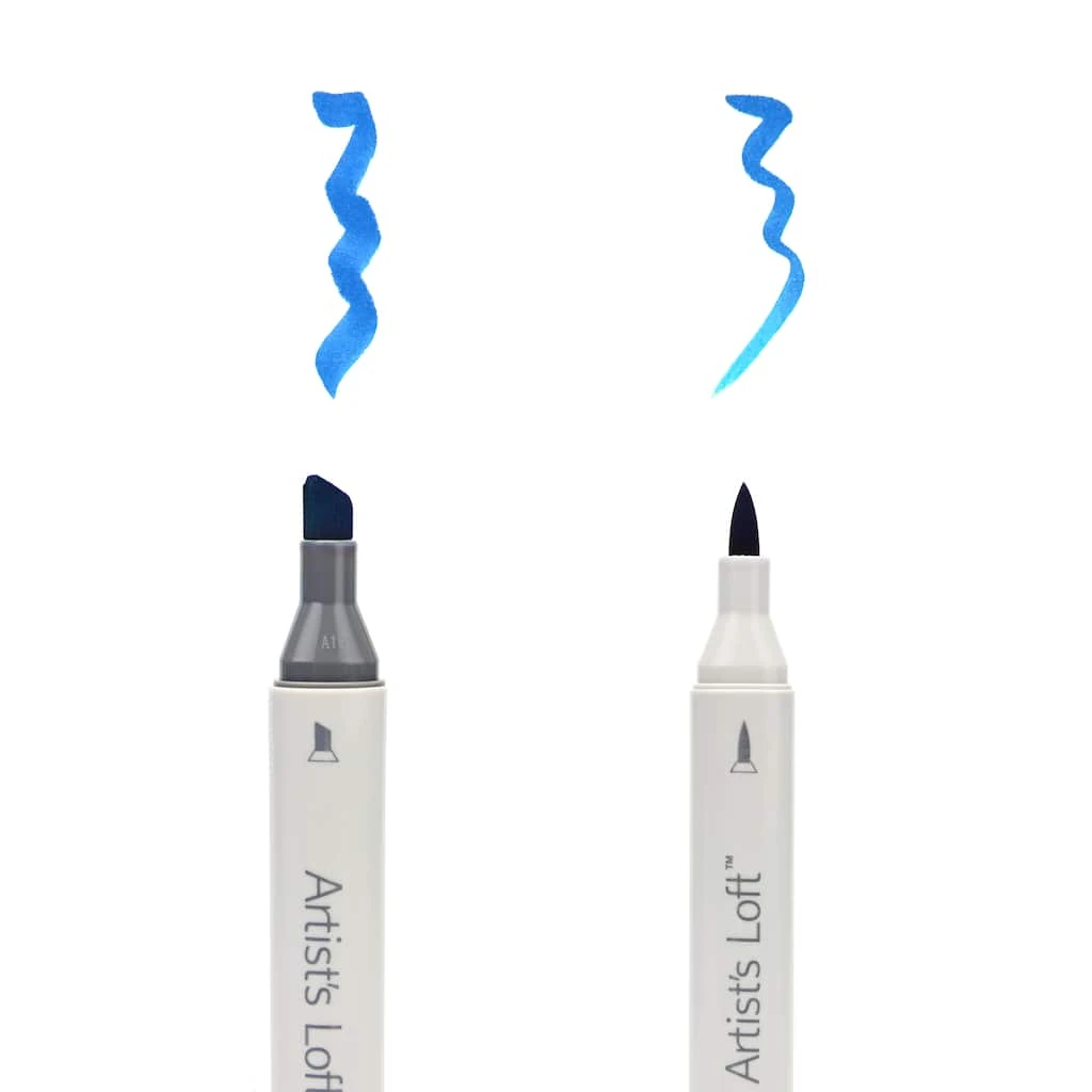 These artist quality alcohol-based ink markers from Artist’s Loft feature dual tips with a flexible brush nib capable of smooth thick to thin transitions. Sure to become a go-to in your art supply kit, these markers are blendable with quick drying and easy flowing ink perfect for layering and shading. In addition to a blender, set colors include maize, spearmint green, clover, forest green, ice blue, cool aqua, nautical blue, oxford blue, cool gray, warm gray and black.