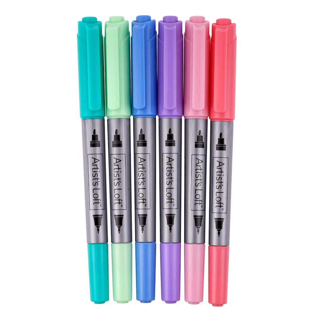 - 6 dual tip markers (fine and ultra fine point)