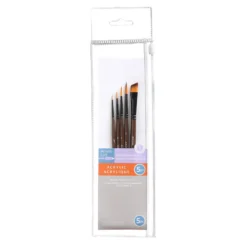 Paint beautiful and precise strokes with ease using this 5 piece brush set. This set of short handle synthetic brushes includes 4 round brushes and an angle shader brush to create endless definition in your art pieces.