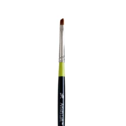 These golden Taklon brushes are widely-used for acrylic, oil, and watercolor decorative painting. This short handle angle shader brush is excellent for curved strokes, small corners, blending, shading, and reaching small areas. Designed for intermediate and advanced craft painters and fine artists, it has triple filament and fully dyed Taklon bristles, a seamless nickel-plated ferrule, and a lacquered wood handle. This brush is absorbent, durable, and versatile.