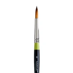 Golden Taklon brushes are widely-used in acrylic, oil, and watercolor decorative painting. This short handle round brush tapers to a sharp point and is ideal for detail work and thick-to-thin strokes. Designed for intermediate and advanced craft painters and fine artists, it has triple filament and fully dyed Taklon bristles, a seamless nickel-plated ferrule, and a lacquered wood handle. This brush is absorbent, durable and versatile.