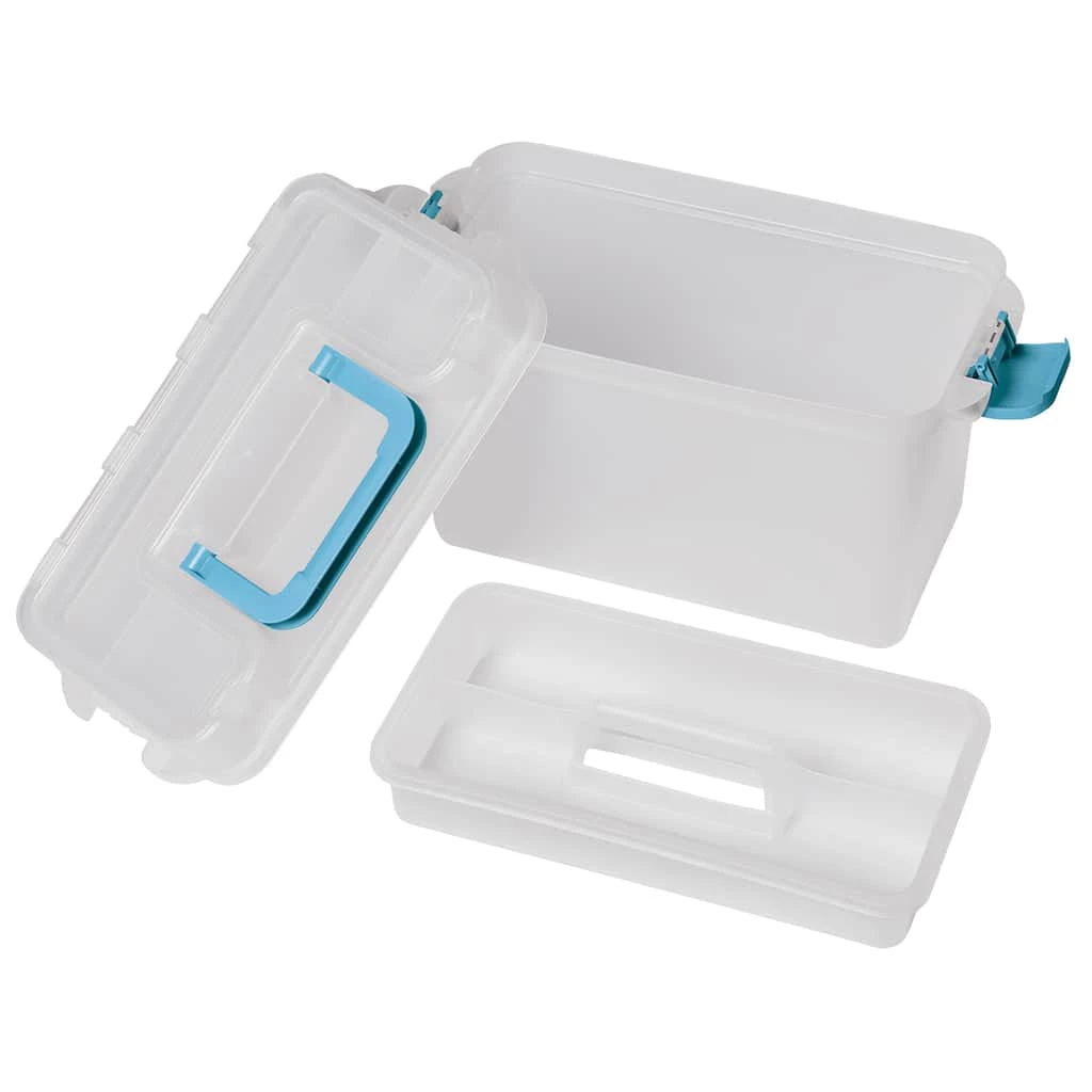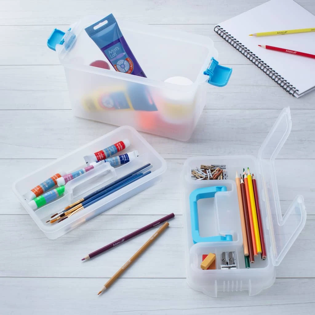 Organize and carry your art and craft supplies in this art storage case. Sporting a sturdy construction and unique design, this storage case is a must-have for every craft enthusiast. Use the comfortable handle to tote your essentials with ease.