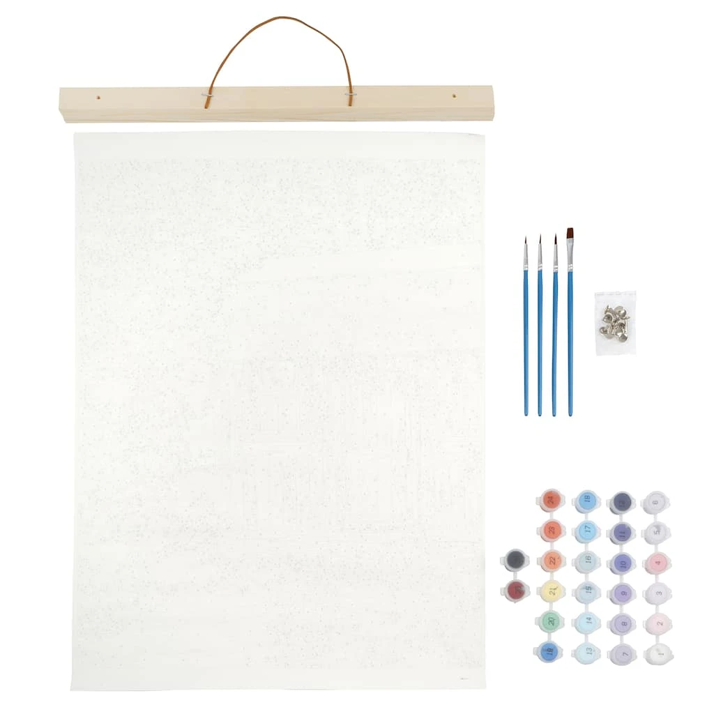 Create your own masterpiece with this pretty paint-by-number kit. The package includes everything required to create a festive image to display on your living room wall.